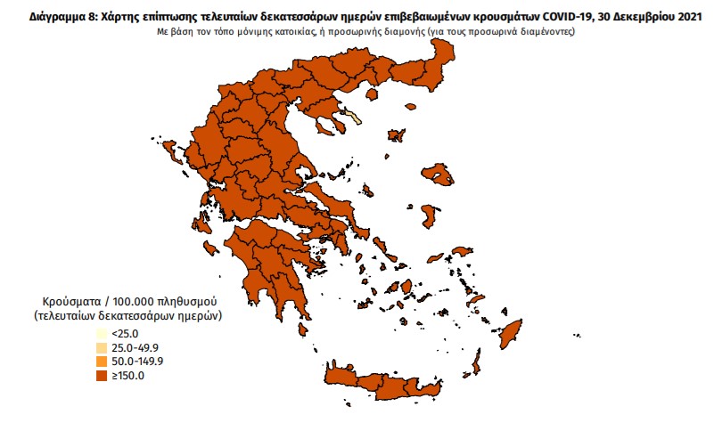 Ο συνολικός αριθμός των κρουσμάτων ανέρχεται σε 1.170.293 (ημερήσια μεταβολή +3.1%), εκ των οποίων 50.4% άνδρες. Με βάση τα επιβεβαιωμένα κρούσματα των τελευταίων 7 ημερών, 217 θεωρούνται σχετιζόμενα με ταξίδι από το εξωτερικό και 1.410 είναι σχετιζόμενα με ήδη γνωστό κρούσμα.