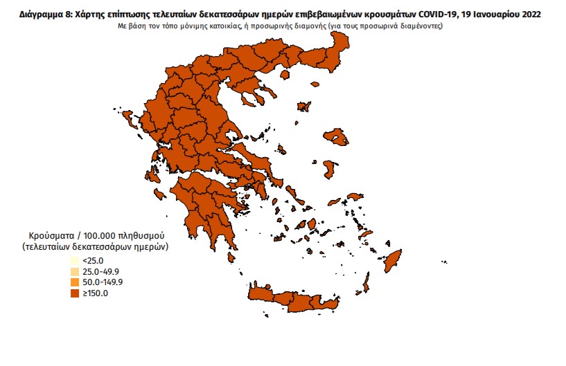 Οι νέοι θάνατοι ασθενών με COVID-19 είναι 88, ενώ από την έναρξη της επιδημίας έχουν καταγραφεί συνολικά 22.285 θάνατοι. Το 95.1% είχε υποκείμενο νόσημα ή/και ηλικία 70 ετών και άνω.