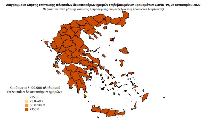 Οι νέοι θάνατοι ασθενών με COVID-19 είναι 115, ενώ από την έναρξη της επιδημίας έχουν καταγραφεί συνολικά 22.970 θάνατοι. Το 95.0% είχε υποκείμενο νόσημα ή/και ηλικία 70 ετών και άνω.