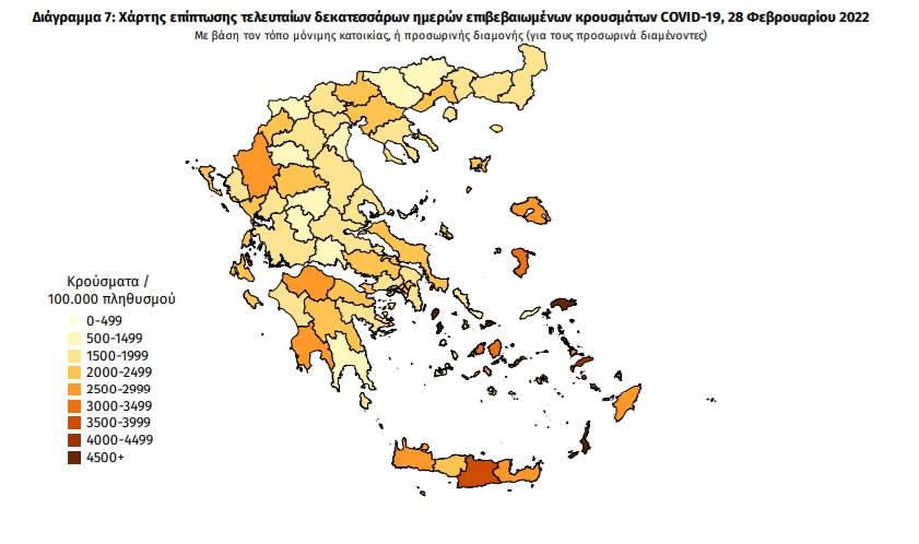 Νωρίς το απόγευμα της Δευτέρας, 28 Φεβρουαρίου, ο Εθνικός Οργανισμός Δημόσιας Υγείας ανακοίνωσε 70 νέους θανάτους, 16.274 ημερήσια κρούσματα και 413 διασωληνωμένους.