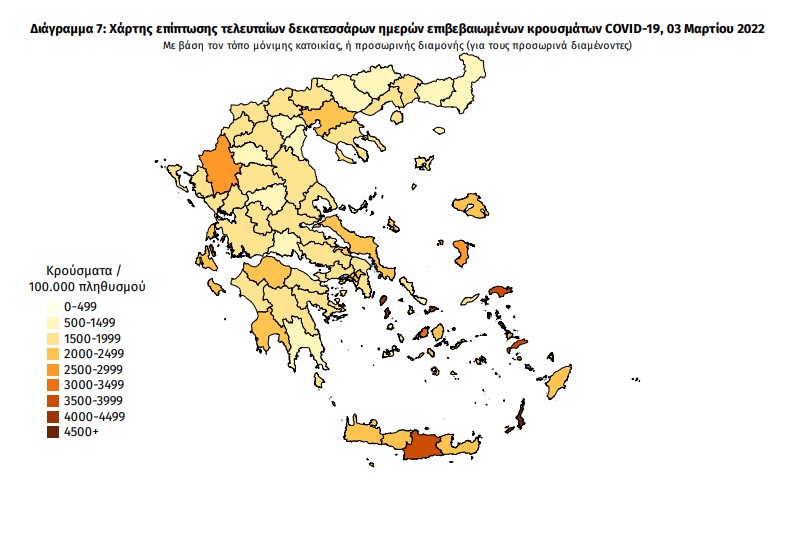 Οι νέοι θάνατοι ασθενών με COVID-19 είναι 63, ενώ από την έναρξη της επιδημίας έχουν καταγραφεί συνολικά 26.036 θάνατοι. Το 95.1% είχε υποκείμενο νόσημα ή/και ηλικία 70 ετών και άνω.