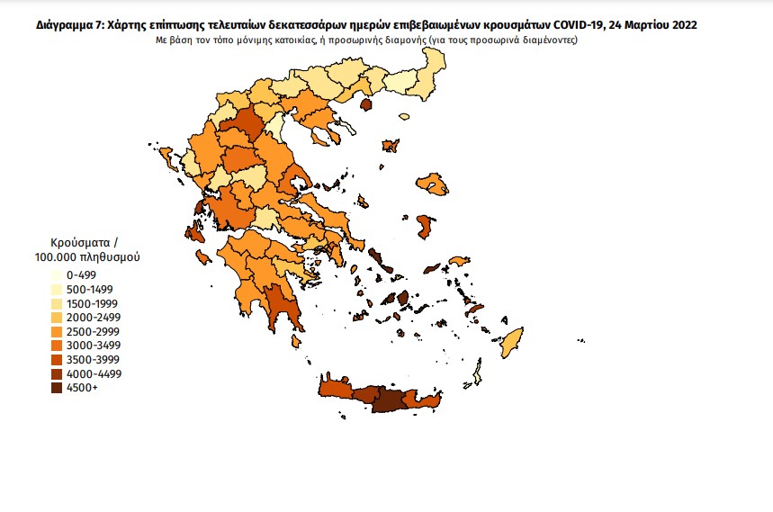 Οι νέοι θάνατοι ασθενών με COVID-19 είναι 42, ενώ από την έναρξη της επιδημίας έχουν καταγραφεί συνολικά 27.125 θάνατοι. Το 95.3% είχε υποκείμενο νόσημα ή/και ηλικία 70 ετών και άνω.