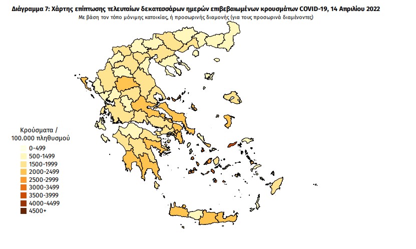 Στην Περιφέρεια Πελοποννήσου καταγράφτηκαν τα εξής κρούσματα: 142 στη Μεσσηνία, 108 στην Αργολίδα, 62 στην Αρκαδία, 109 στην Κορινθία και 73 στη Λακωνία.