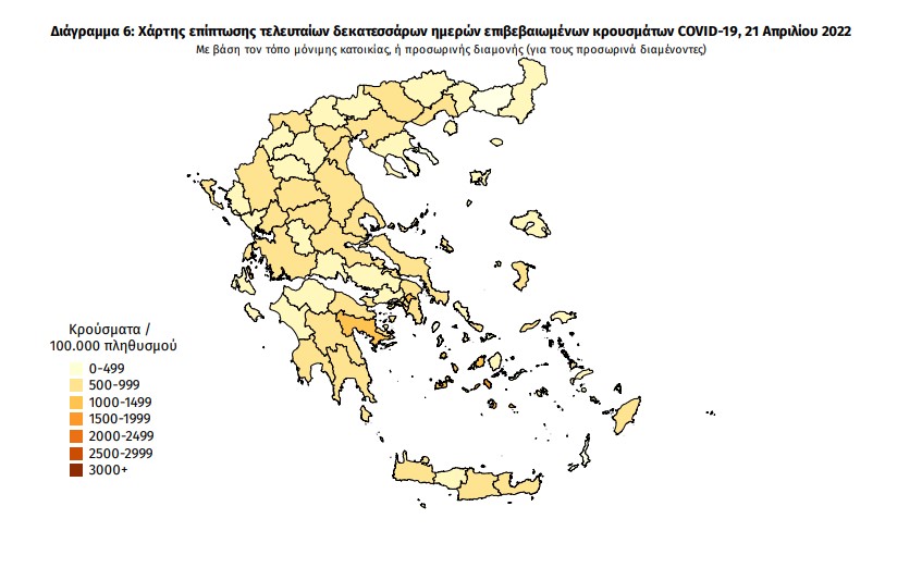 Τα νέα εργαστηριακά επιβεβαιωμένα κρούσματα της νόσου(άτομα) που καταγράφηκαν τις τελευταίες 24 ώρες ήταν 6.755. Ο συνολικός αριθμός των ατόμων που νόσησαν ανέρχεται σε 3.266.368 (ημερήσια μεταβολή +0.2%), εκ των οποίων 48.9% άνδρες.