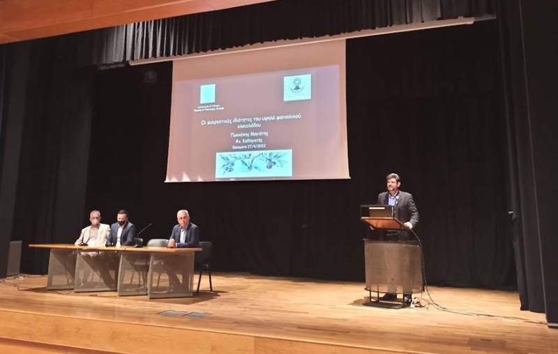 Ο καθηγητής της Φαρμακευτικής Σχολής του Πανεπιστημίου Αθηνών Προκόπης Μαγιάτης παρουσίασε συνοπτικά μελέτες για την ευεργετική επίδραση του πολυφαινολικού ελαιολάδου στη λειτουργία της καρδιάς, το Αλτσχάιμερ, κάποιες μορφές καρκίνου και τον διαβήτη. Ο κ. Μαγιάτης υπενθύμισε ότι πριν 10 χρόνια μίλησε για πρώτη φορά στην Ελλάδα από το Δημαρχείο Καλαμάτας για τις υγειοπροστατευτικές ιδιότητες του πολυφαινολικού ελαιολάδου.