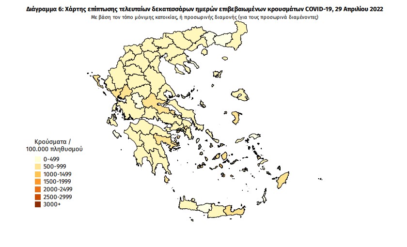 Οι νέοι θάνατοι ασθενών με COVID-19 είναι 34, ενώ από την έναρξη της επιδημίας έχουν καταγραφεί συνολικά 29.114 θάνατοι. Το 95.5% είχε υποκείμενο νόσημα ή/και ηλικία 70 ετών και άνω.