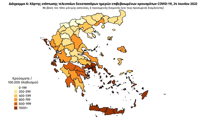 Οι νέοι θάνατοι ασθενών με COVID-19 είναι 13, ενώ από την έναρξη της επιδημίας έχουν καταγραφεί συνολικά 30.154 θάνατοι. Το 95.7% είχε υποκείμενο νόσημα ή/και ηλικία 70 ετών και άνω