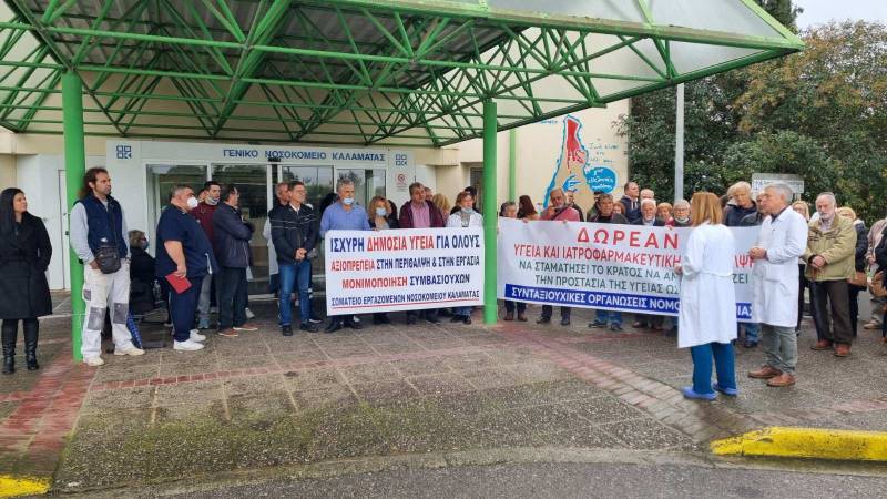 Την ενίσχυση του δημοσίου συστήματος υγείας με αύξηση της κρατικής χρηματοδότησης και διπλασιασμό του προσωπικού, απαίτησαν γιατροί κι εργαζόμενοι του Νοσοκομείου Καλαμάτας, χθες σε κινητοποίηση μπροστά από την είσοδο των τακτικών ιατρείων, συμμετέχοντας στην 48ωρη απεργία (χθες και σήμερα) της Ομοσπονδίας Ενώσεων Νοσοκομειακών Γιατρών Ελλάδας (ΟΕΝΓΕ).