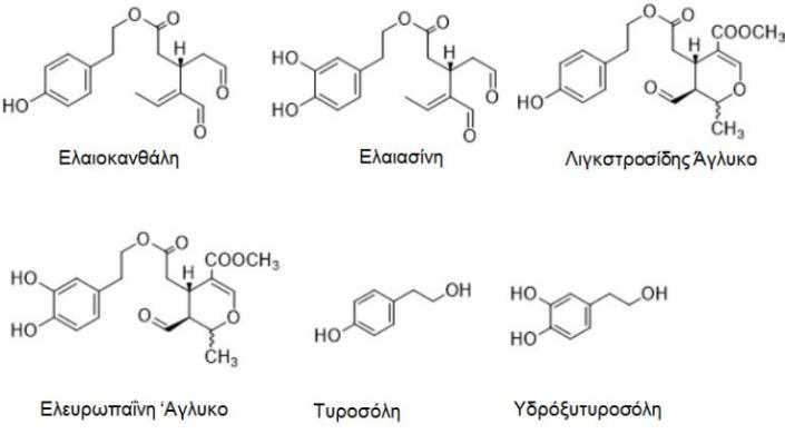 Εικόνα 1. Χημικοί τύποι των πιο καλά μελετημένων πολυφαινολών του ελαιόλαδου