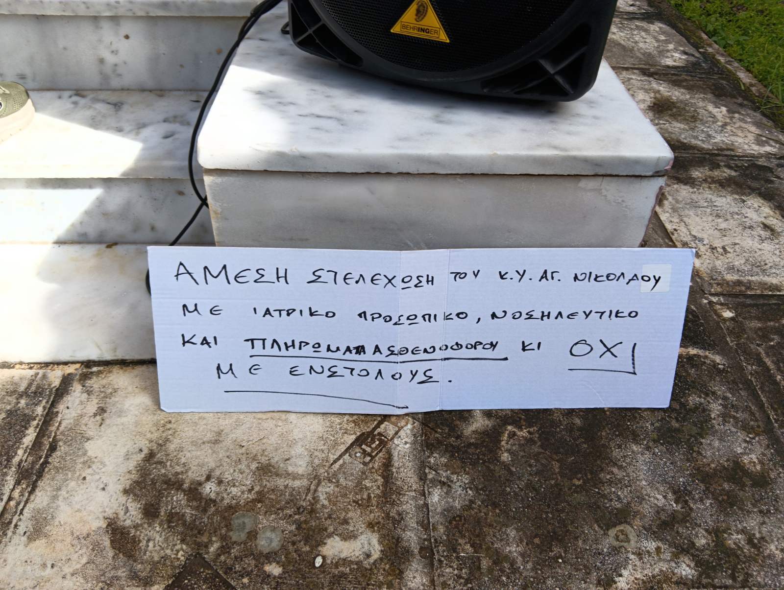 Ο γιατρός και διευθυντής του Κ.Υ. Αγίου Νικολάου Γιάννης Μπινάκας επισήμανε ότι “το Κ.Υ. είναι ζωτικής σημασίας για τον τόπο” και διαβεβαίωσε πως “θα συνεχίσουμε να αγωνιζόμαστε με όλες μας τις δυνάμεις, δίνουμε τον καλύτερο εαυτό μας”. Εξέφρασε την ελπίδα “να στελεχωθεί το Κ.Υ. και να ακουστούμε εκεί που πρέπει”, επισημαίνοντας πως “το Κ.Υ. 15 χρόνια είναι στην ίδια κατάσταση και κάθε χρόνο και χειρότερα”.