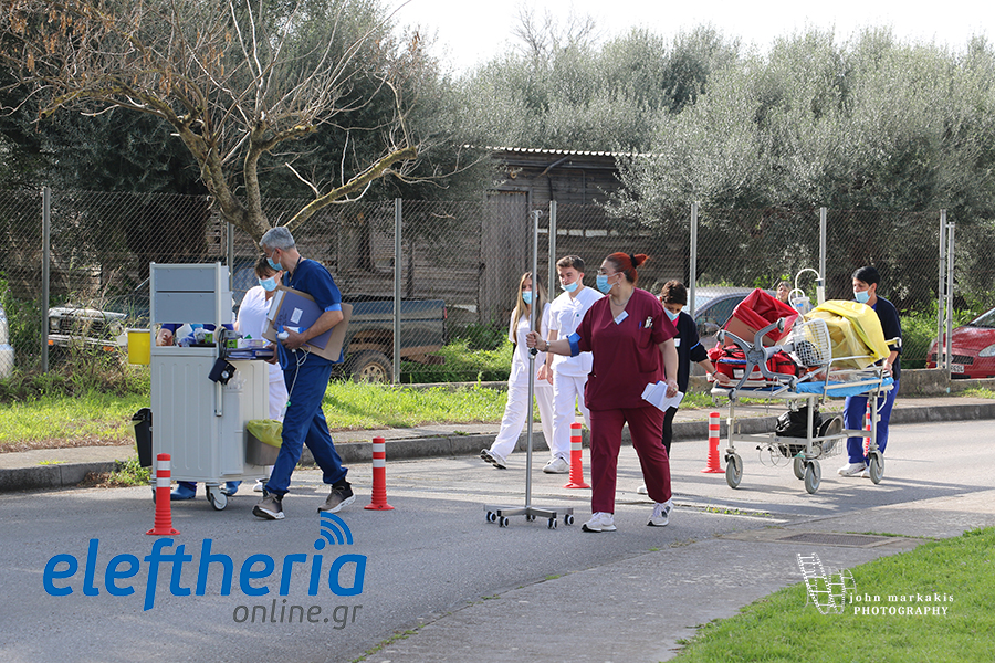 Ακολούθησαν η μεταφορά επιτόκου με φορείο στο χειρουργείο για να γεννήσει, νεογνού σε θερμοκοιτίδα κι ασθενών από τη Μονάδα Εμφραγμάτων και με κάταγμα ισχίου.