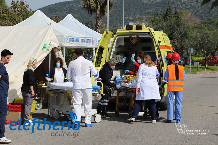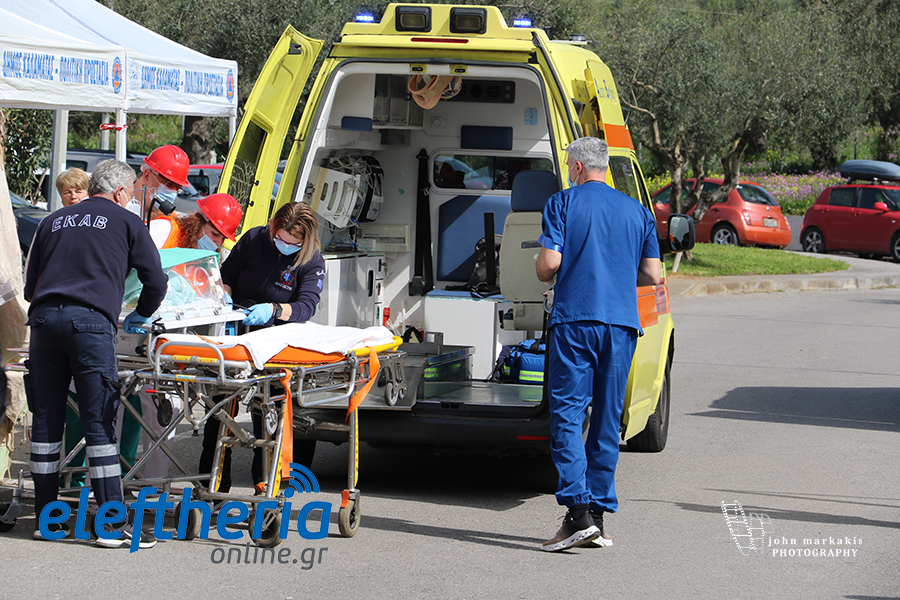 Στην άσκηση μπήκαν στη συνέχεια ασθενοφόρα του ΕΚΑΒ, που με ταχύτητα έσπευσαν και μετέφεραν τους ασθενείς και τη λεχοΐδα σε άλλα νοσοκομεία.
