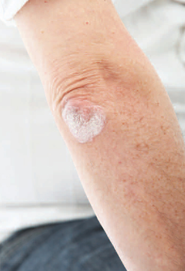 Η συχνότερη μορφή είναι η ψωρίαση κατά πλάκας. Υπολογίζεται πως το 80% των ασθενών πάσχουν από αυτήν τη μορφή ψωρίασης, η οποία χαρακτηρίζεται από την εμφάνιση σαφώς αφοριζόμενων ερυθηματωδών πλακών, οι οποίες καλύπτονται από αργυρόχροα λέπια με πιθανότερα σημεία εντοπισμού τους αγκώνες, τα γόνατα, το τριχωτό της κεφαλής. Συχνά προσβάλλονται και τα νύχια με χαρακτηριστικό την εμφάνιση πολυάριθμων εγκολπώσεων και δυστροφικών αλλοιώσεων (ψωριασική ονυχία).