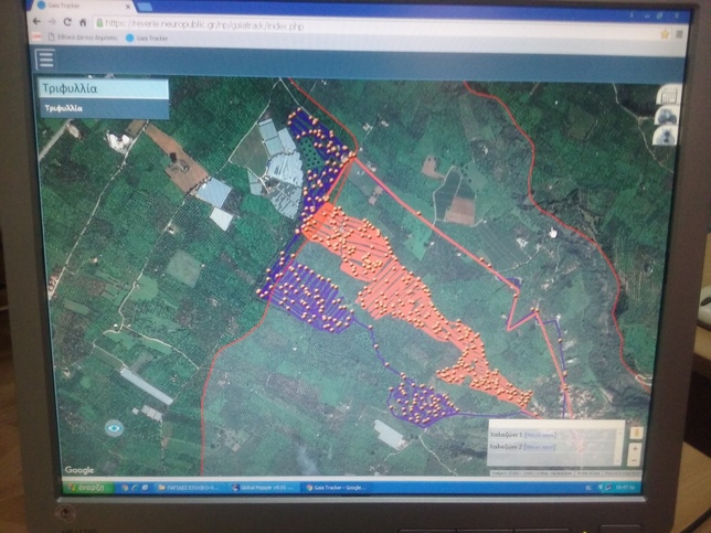 Με το online σύστημα που έχει εγκαταστήσει, σε πραγματικό χρόνο μπορεί να ελέγχει την κίνηση των τρακτέρ που κάνουν ψεκασμούς μέσω GPS, αλλά και τις θέσεις των παγίδων με τον πληθυσμό δάκου που έχει η καθεμία.