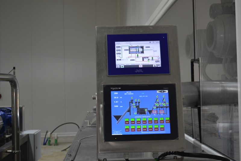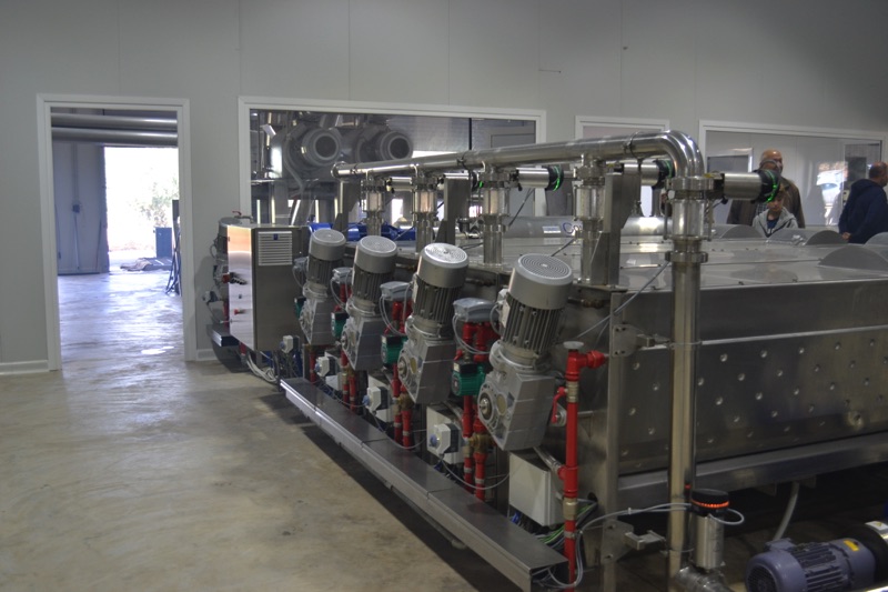 Μιλώντας για την τεχνολογία contherm ανέφερε: «Πρόκειται για δύο σωλήνες με διπλά τοιχώματα νερού όπου ένας κεντρικός άξονας εφοδιασμένος με μαχαίρια γυρίζει την ελαιόπαστα ομογενοποιημένα και την θερμαίνει πάλι ομογενοποιημένα, οπότε μετά το πέρασμα από αυτούς τους δύο σωλήνες, υπό πίεση, η ελαιόπαστα βγαίνει στη θερμοκρασία που έχει προγραμματιστεί από την οθόνη του contherm. Εάν θέλεις παρακάμπτεις τους μαλακτήρες και πας απευθείας στο ντεκάτερ για να βγάλεις το προϊόν. Εάν δεν θες, το αφήνεις, όπως κάνουμε εμείς, λίγο στον μαλακτήρα, γιατί κάποιες πειραματικές διαδικασίες έχουν δείξει ότι η μικρή οξείδωση για λίγα λεπτά, 15-20 λεπτά, ανοίγει τα αρώματα και δίνει καλύτερο προϊόν».