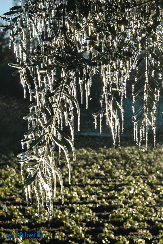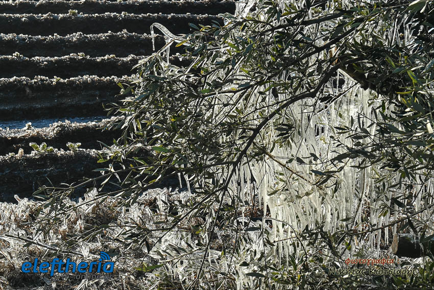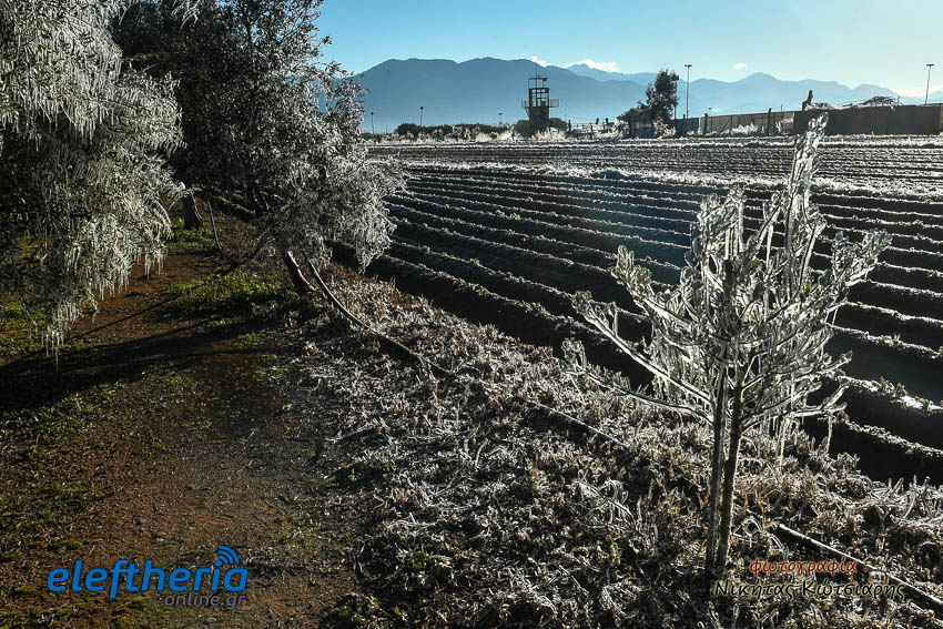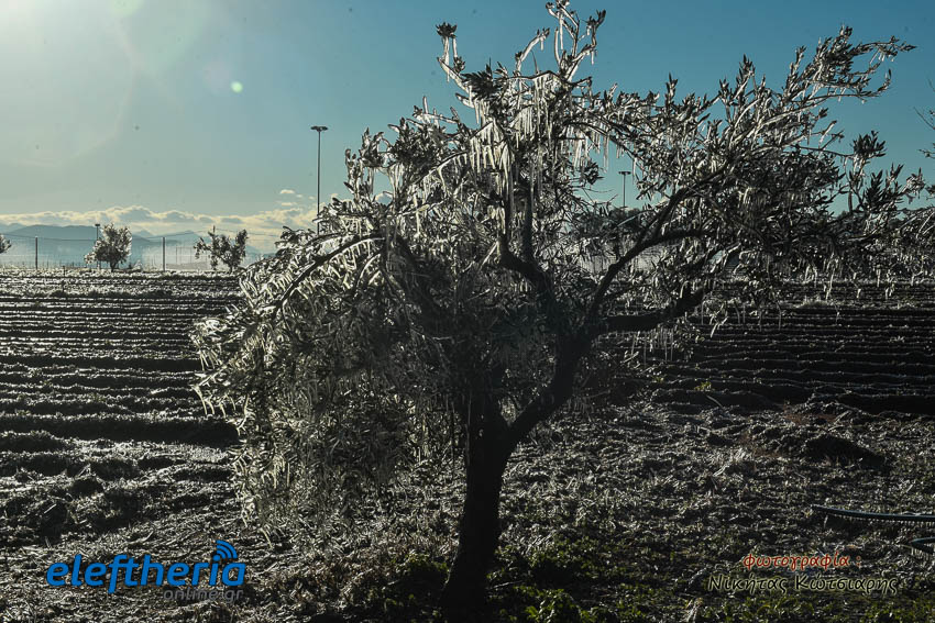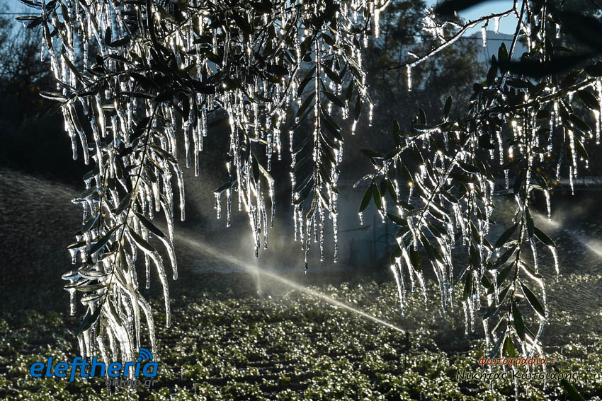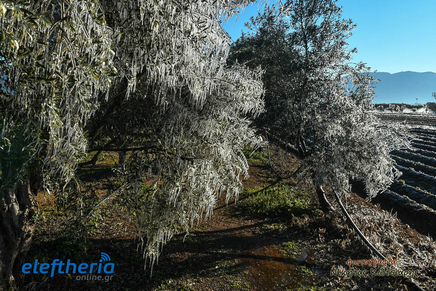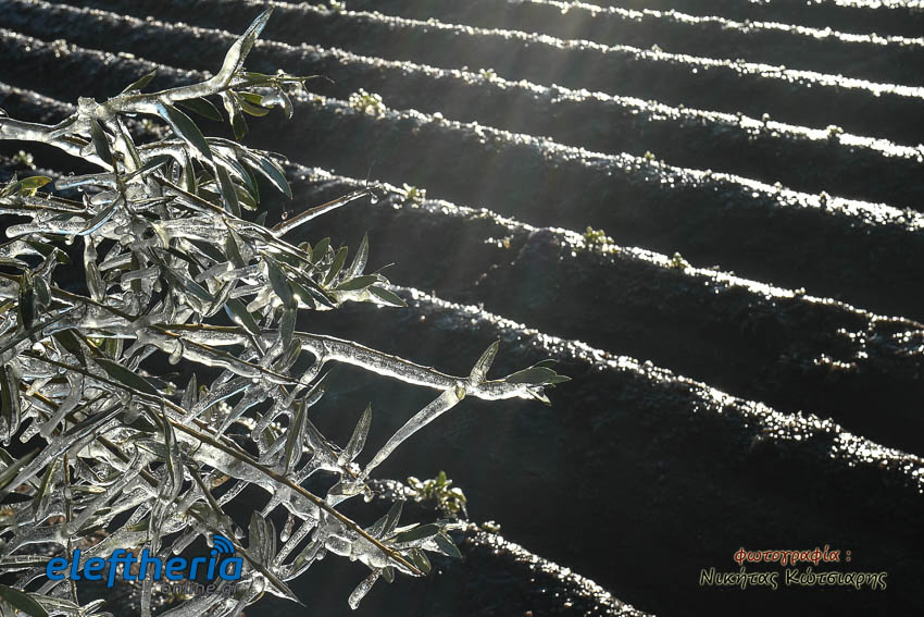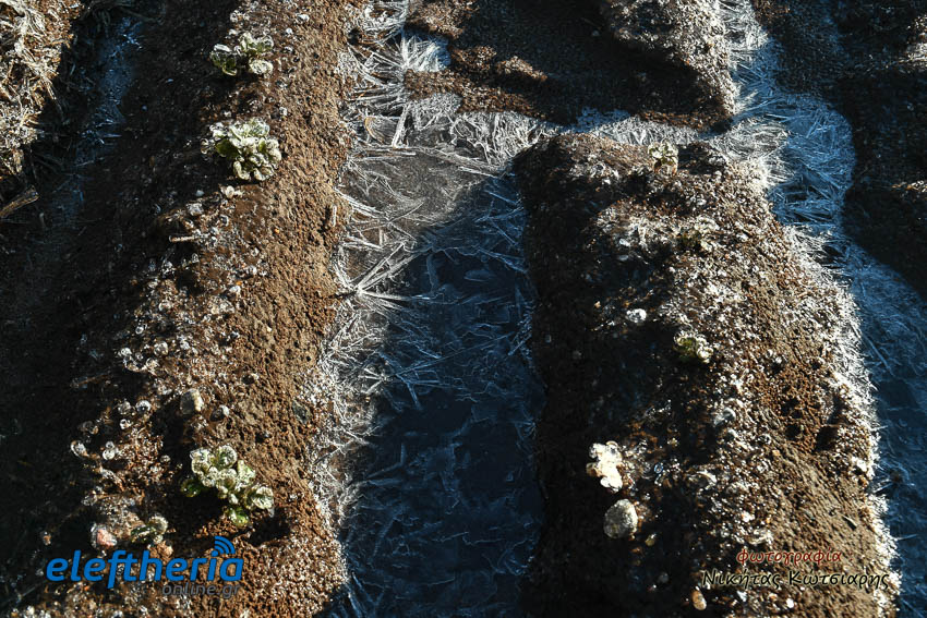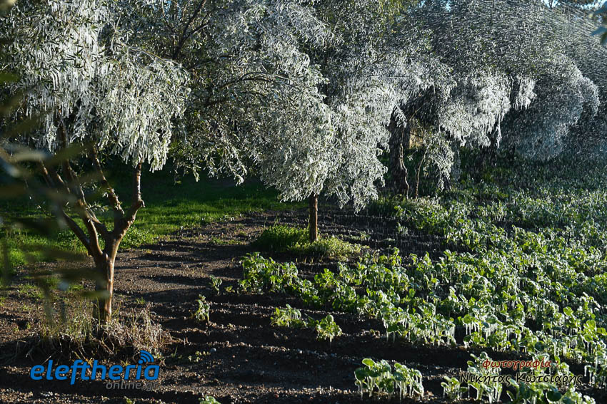 Το θέαμα που δημιουργήθηκε ήταν όμορφο, αλλά αυτό δεν μειώνει την ανησυχία των καλλιεργητών, που βλέπουν τον κίνδυνο για την σοδειά τους να ελλοχεύει λόγω των χαμηλών θερμοκρασιών και του παγετού.