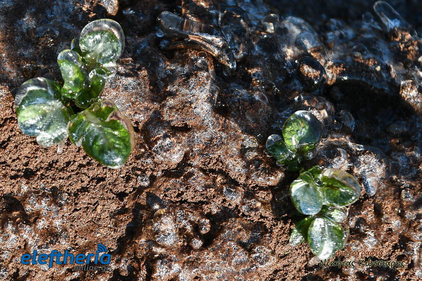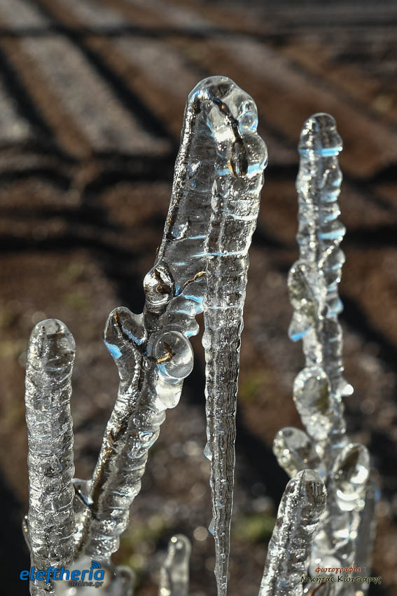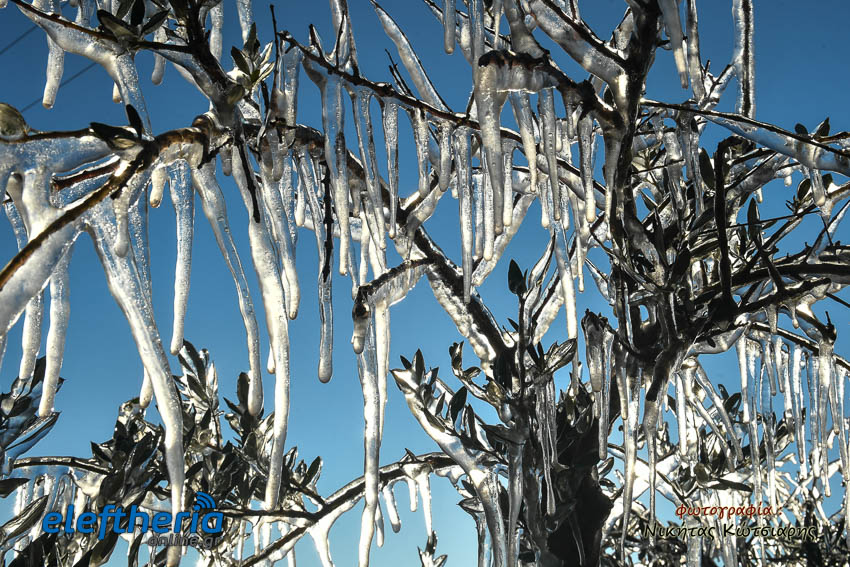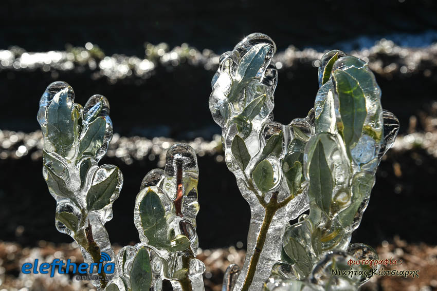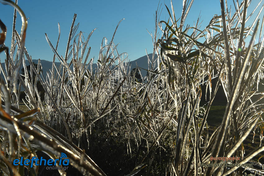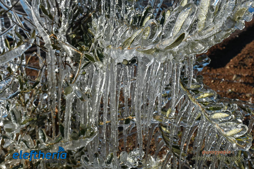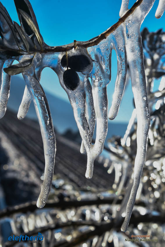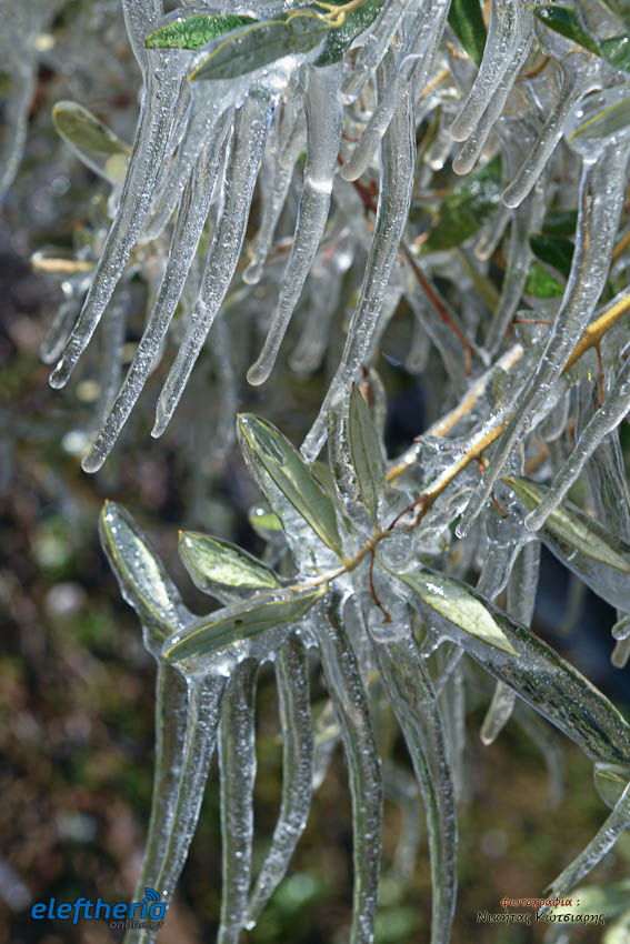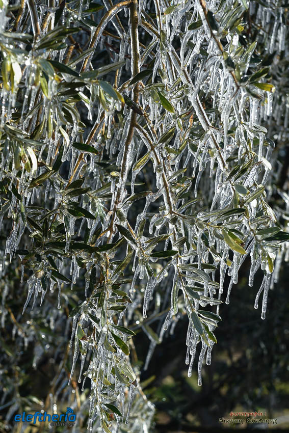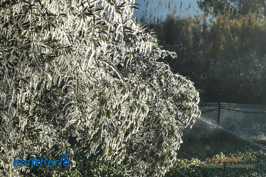 Το θέαμα που δημιουργήθηκε ήταν όμορφο, αλλά αυτό δεν μειώνει την ανησυχία των καλλιεργητών, που βλέπουν τον κίνδυνο για την σοδειά τους να ελλοχεύει λόγω των χαμηλών θερμοκρασιών και του παγετού.