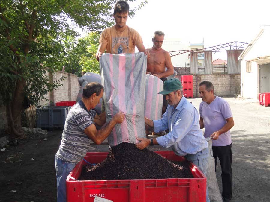 Αυτό είναι το κλίμα που καταγράψαμε στην αποθήκη της ΣΚΟΣ στη Μεσσήνη, με παραγωγούς που παρέδιδαν τη σταφίδα τους στην Ενωση.