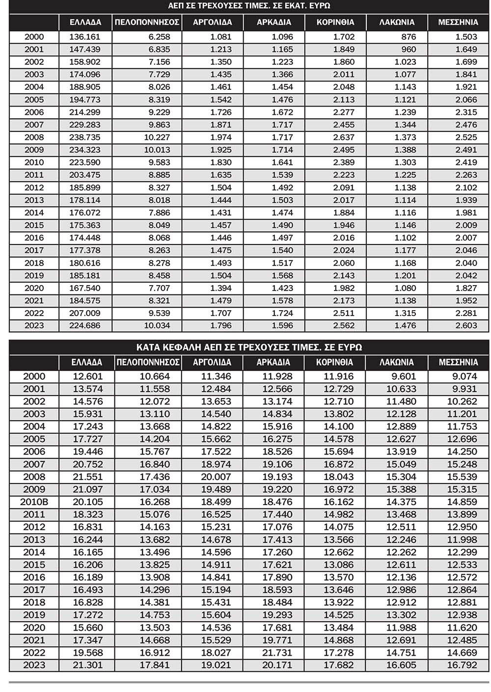 ΚΑΤΑ ΚΕΦΑΛΗ ΑΕΠ: Η ΘΕΣΗ ΤΗΣ ΜΕΣΣΗΝΙΑΣ ΠΙΣΩ ΑΠΟ ΤΗΝ ΑΥΞΗΣΗ