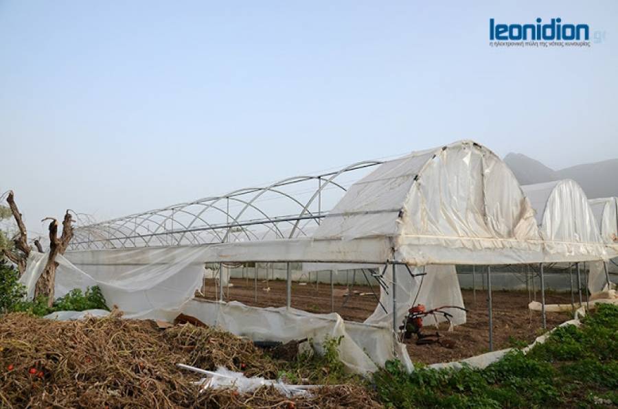 Μεγάλες ζημιές προκάλεσε χθες η κακοκαιρία σε καλλιέργειες και αγροτικές εγκαταστάσεις στον κάμπο του Λεωνιδίου Κυνουρίας.