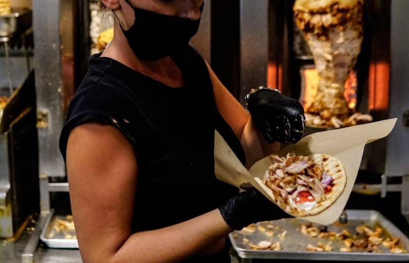 - Νίκος Αλειφέρης, «Καλοφαγάς»: Η πανδημία του κορονοϊού μάς επηρέασε, όπως και τους περισσότερους κλάδους. Ειδικά τις πρώτες μέρες που άρχισαν τα κρούσματα στην Ελλάδα η πτώση της δουλειά μας ήταν μεγάλη, κυρίως τις δύο πρώτες εβδομάδες πριν επιβληθεί η καραντίνα, σε ποσοστό που έφτασε το 70%. Με την πάροδο του χρόνου ο κόσμος ξεπέρασε τις αρχικές του φοβίες, επιλέγοντας εκ νέου τα προϊόντα μας, είτε από το κατάστημά μας είτε μέσω delivery. Επιπλέον η επιβολή της μάσκας στο επάγγελμά μας επέφερε μεγάλες δυσκολίες, καθώς το να εργάζεται κανείς δίπλα σε αναμμένα κάρβουνα, ιδίως εν μέσω καλοκαιριού, μόνο εύκολο δεν μπορεί να θεωρηθεί. Σε ό,τι έχει να κάνει με τους θερινούς μήνες, στην αρχή υπήρξε μια μικρή πτώση στον τζίρο μας, ωστόσο ο Αύγουστος ήταν μακράν καλύτερος. Απ' την πλευρά μας δεν έχουμε σκοπό να αυξήσουμε τις τιμές στις πίτες, διατηρώντας τον μέσο όρο που είναι στα 2,5 ευρώ. Η τελευταία αύξηση που έγινε λόγω φορολογίας ήταν πριν από 2 χρόνια στο χοιρινό, γι' αυτό το λόγο πλέον είναι ακριβότερο απ' το κοτόπουλο, αν και το τελευταίο διάστημα υπάρχει κινητικότητα ώστε να εξισορροπηθούν οι τιμές.
