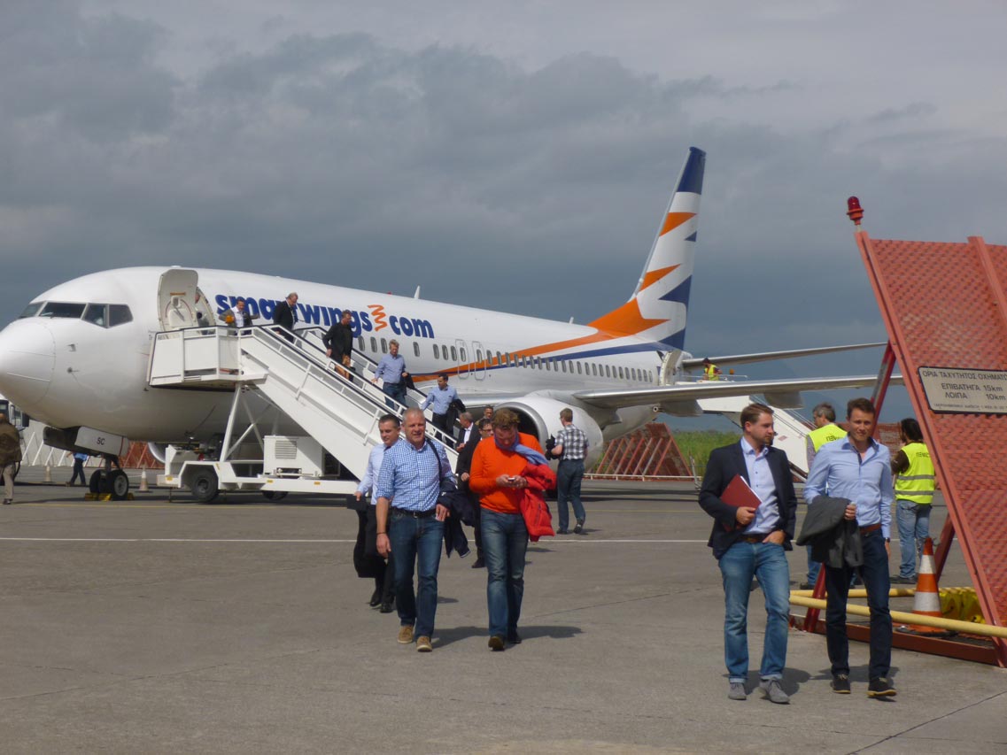 Στο αεροδρόμιο "Καπετάν Βασίλης Κωνσταντακόπουλος" έφθασαν νωρίτερα τα πρώτα αεροπλάνα προερχόμενα από Φρανκφούρτη και Κολωνία της Γερμανίας. Σύμφωνα με τη διοίκηση του αεροδρόμίου από σήμερα και μέχρι τις 5 Δεκεμβρίου θα φθάνουν στην Καλαμάτα 4 αεροπλάνα με 150 - 180 επιβάτες το καθένα από διάφορες ευρωπαϊκές χώρες. Από εκεί με πούλμαν θα μεταφέρονται στην Cοsta Navarino, όπου θα λαμβάνουν μέρος στην παρουσίαση και στα δοκιμαστικά των νέων μοντέλων και την επόμενη ημέρα θα αναχωρούν, δίνοντας τη θέση τους στους επόμενους επισκέπτες.