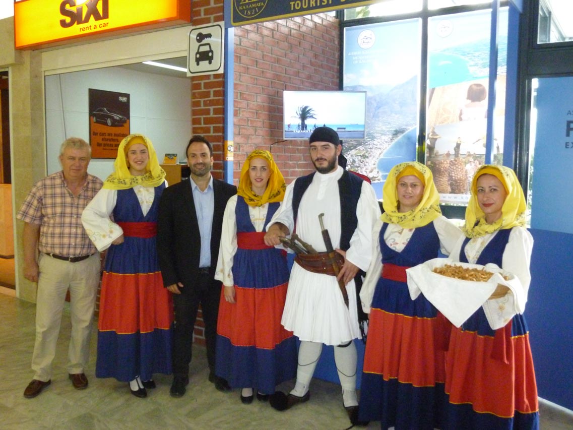 Τους πρώτους επισκέπτες υποδέχθηκε ο Δήμος Καλαμάτας με επικεφαλής τον αντιδήμαρχο Δημήτρη Βεργόπουλο, ενώ στις εκδηλώσεις υποδοχής συμμετείχε και ο Πολιτιστικός Σύλλογος Αγίας Τριάδας. Μοιράστηκαν παραδοσιακά προϊόντα (λαλάγια κ.α.), καθώς και ενημερωτικό υλικό για την περιοχή της Καλαμάτας (χάρτες κτλ.)
