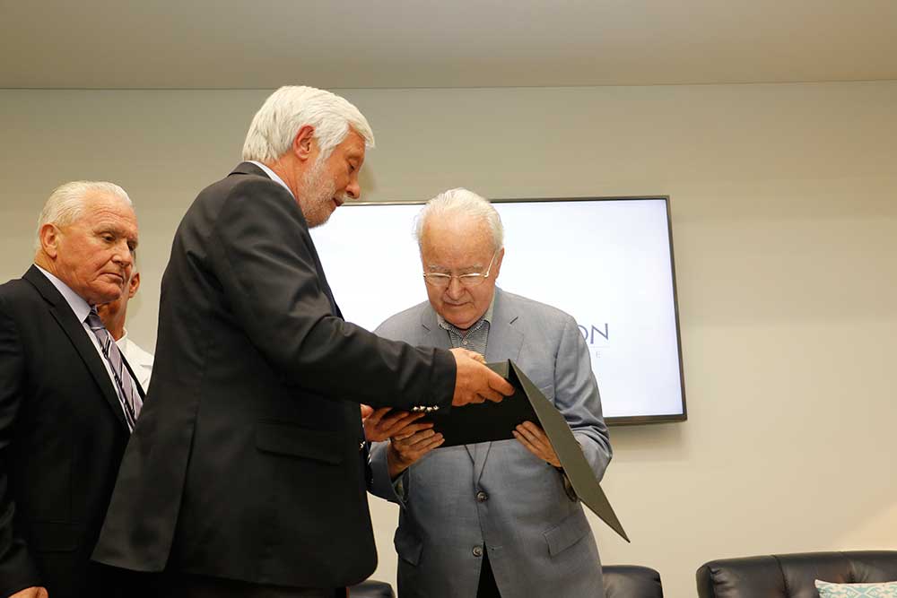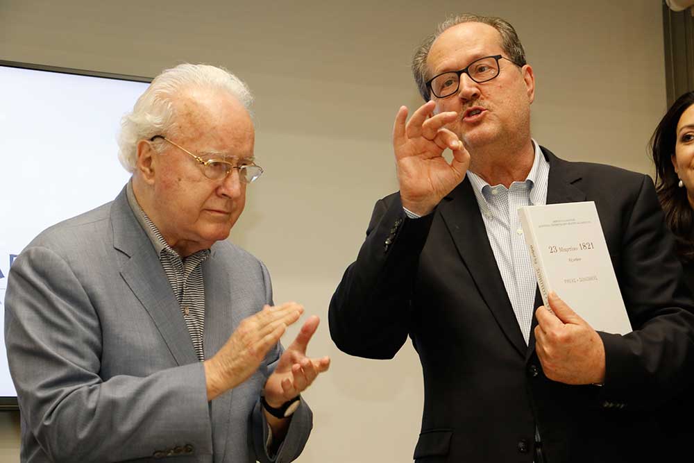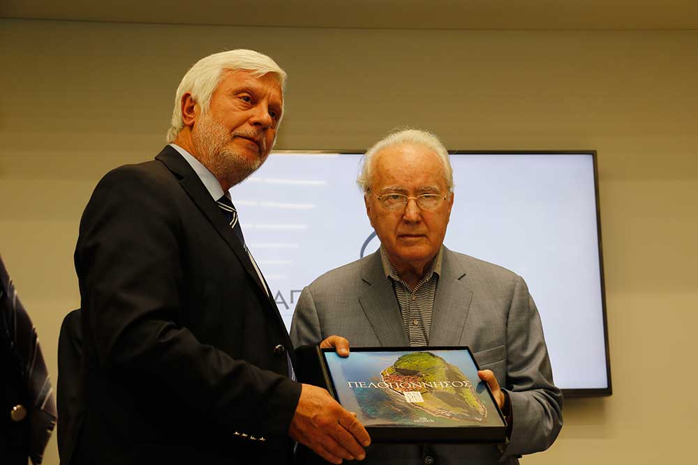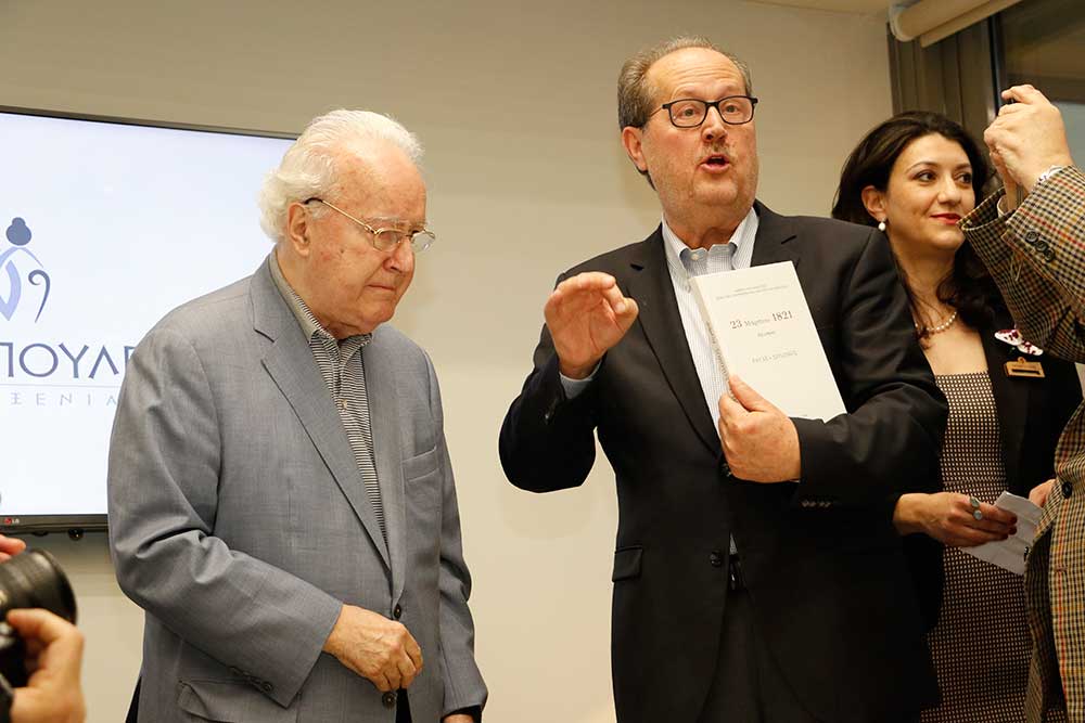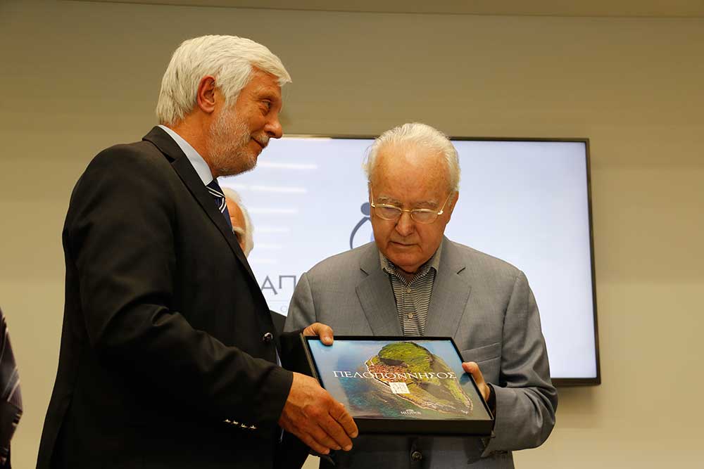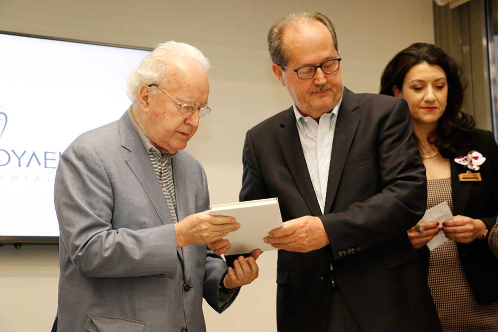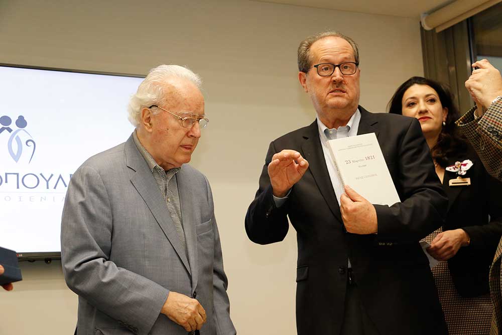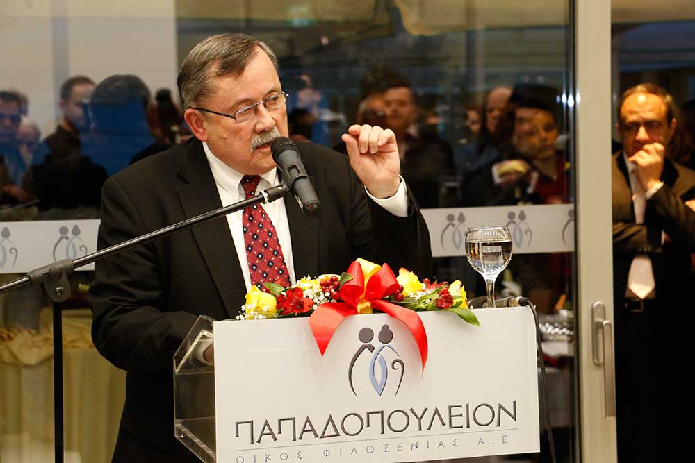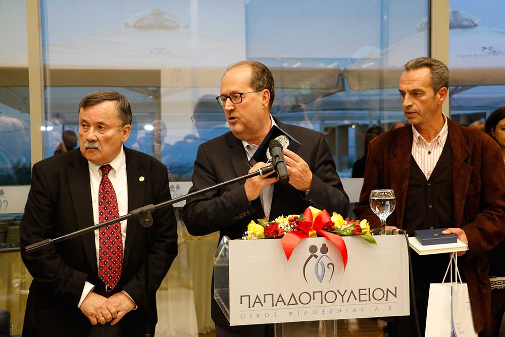 Ο περιφερειάρχης Πέτρος Τατούλης δώρισε ένα λεύκωμα της Μεσσηνίας στον κ. Παπαδόπουλο, ώστε οι εικόνες του να τον συντροφεύουν σε όποιο μέρος της γης και αν βρίσκεται. Εκ μέρους του προσωπικού, ευχαριστίες απηύθυνε η Αννα Καλογεροπούλου και στη συνέχεια το λόγο πήρε ο γενικός διευθυντής Νίκος Παπαδόπουλος. "Είμαι πολύ χαρούμενος για τα όσα ειπώθηκαν σήμερα για τον εξάδελφό μου. Το "Papadopoulion House" αυτή τη στιγμή δίνει δουλειά σε 35 άτομα και υπάρχουν και πολλά σχέδια για το μέλλον" είπε ο κ. Παπαδόπουλος.