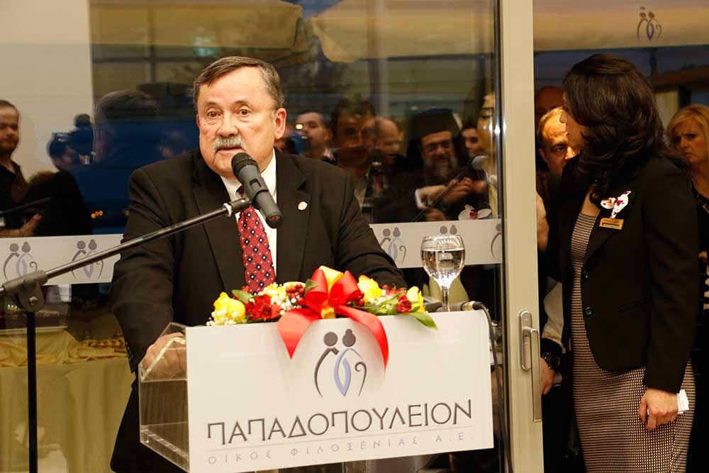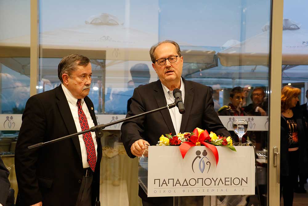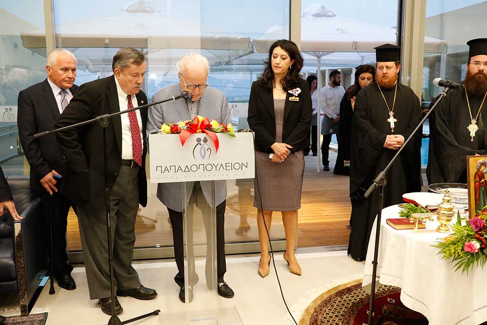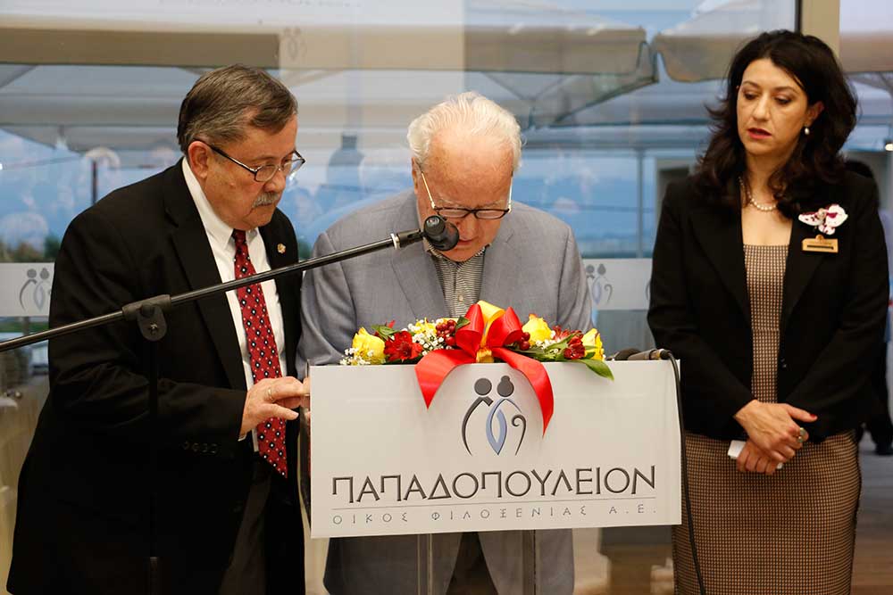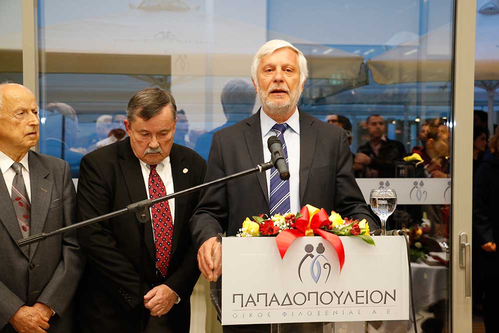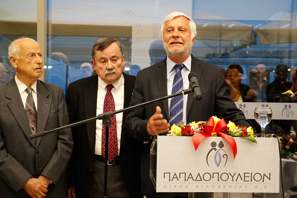 Ο ίδιος ο Σταύρος Παπαδόπουλος μίλησε με δυσκολία, αφού του ήταν σχεδόν αδύνατο να συγκρατήσει τα δάκρυά του. "Εφυγα πολύ νέος. Οπου και να ταξίδεψα, η σκέψη και η καρδιά μου ήταν εδώ. Η χαρά και η συγκίνησή μου είναι τόση, γιατί το έργο αυτό αφορά τους ανθρώπους της τρίτης ηλικίας. Αυτούς που έχουν μοχθήσει μια ολόκληρη ζωή. Δικαιούνται να έχουν φροντίδα, περίθαλψη και πάνω από όλα ένα οικογενειακό περιβάλλον. Αυτό είναι το κύριο μέλημά μου. Είμαστε δίπλα τους για να τους κρατάμε ενεργούς" τόνισε ο ιδρυτής του "Papadopoulion House" και ευχαρίστησε τους συνεργάτες, τους προμηθευτές και ειδικά την εταιρεία "People" του Ευάγγελου Πτωχού.