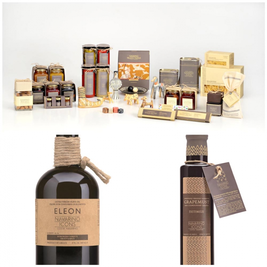 Τα Navarino Icons από την Costa Navarino δημιουργούνται σε συνεργασία με μικρούς τοπικούς παραγωγούς, με σεβασμό στον πολιτισμό, την ιστορία του τόπου και τις συνταγές που έχουν περάσει από γενιά σε γενιά. Η παραγωγή περιλαμβάνει μικρές ποσότητες, χρησιμοποιούνται παραδοσιακές μέθοδοι και ακολουθείται αυστηρός ποιοτικός έλεγχος σε κάθε στάδιο. Η συλλογή που φιλοξενείται στα Harrods περιλαμβάνει το εξαιρετικά παρθένο ελαιόλαδο, τις ελιές, το εξαιρετικά παρθένο ξίδι με δενδρολίβανο και θυμάρι, το αλάτι, το πετιμέζι που παράγεται από ποικιλία Chardonnay, και το σπιτικό γλυκό του κουταλιού ελιά. Στο Julius Meinl am Graben βρίσκονται ήδη το ελαιόλαδο, οι ψητές κόκκινες πιπεριές και το dip πιπεριάς-ντομάτας, ενώ επιπλέον προϊόντα θα βρεθούν σύντομα στα ράφια του.