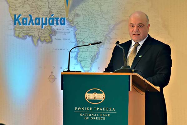 Στην εμπεριστατωμένη μακροσκελή του ομιλία ο διευθύνων σύμβουλος της Εθνικής Τράπεζας ανέλυσε την πορεία της ελληνικής οικονομίας, στη σχέση των τραπεζών με την αγορά και την επιχειρηματικότητα όπως αυτή διαμορφώνεται σήμερα, λέγοντας ότι: «Η Εθνική Τράπεζα προσπάθησε -και κατάφερε- να βρίσκεται με συνέπεια δίπλα στους πελάτες της, ακόμα και στις αντιξοότητες της κοινωνίας και της οικονομίας. Περίοδοι αναταράξεων δεν θα εκλείψουν, προφανώς τίποτα συγκρίσιμο με όσα ζήσαμε. Η πορεία όμως έχει χαραχθεί. Η τράπεζα είναι έτοιμη να ανταποκριθεί στις αυξανόμενες απαιτήσεις που δημιουργεί η τροχοδρόμηση προς τη διατηρήσιμη ανάπτυξη».