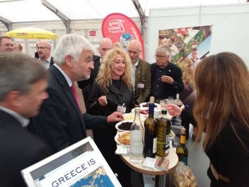 Συγκεκριμένα, στο πλαίσιο της συνεργασίας της Περιφέρειας Πελοποννήσου και της επαρχίας Schwabisch Hall η «Μυθική Πελοπόννησος» παρουσιάστηκε στην οικονομική – εμπορική έκθεση «Wirtschafts Messe 2018», που πραγματοποιήθηκε στη Γερμανία, στην επαρχία Schwabisch Hall από 9 έως 11 Νοεμβρίου. Την περιφερειακή αρχή εκπροσώπησε η θεματική αντιπεριφερειάρχης Αντωνία Μπούζα, η οποία υποδέχτηκε στο περίπτερο της Πελοποννήσου τους αξιωματούχους του κρατιδίου Βάδης-Βυρτεμβέργης Wolfgang Reimer και Gerhard Bauer, οι οποίοι μεταξύ άλλων δοκίμασαν τα εξαιρετικής ποιότητας προϊόντα του Μοριά και δήλωσαν εντυπωσιασμένοι.