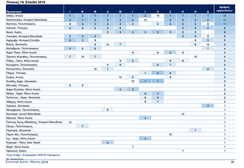 Αναλυτικά τα στοιχεία για τους δημοφιλείς προορισμούς του 2018 με βάση τις προτιμήσεις των Ελλήνων ταξιδιωτών παρουσιάζονται στον πίνακα.