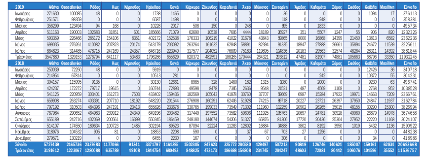 Αναλυτικά οι αφίξεις του πρώτου εννεαμήνου του 2019 ανά αεροδρόμιο και μήνα παρουσιάζονται στον πίνακα:
