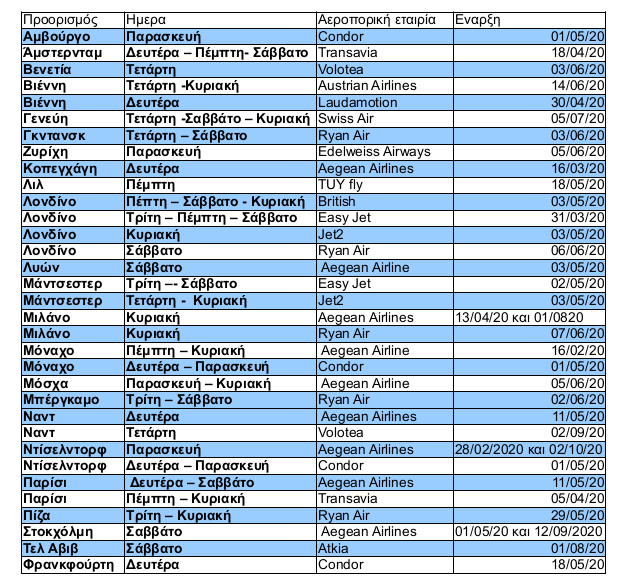 Οι προγραμματισμένες τακτικές πτήσεις απεικονίζονται στον πίνακα.