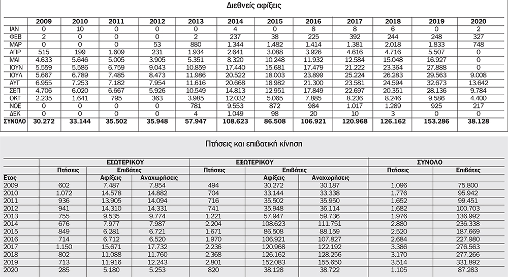 Αξίζει όμως εδώ να σημειωθεί ότι η μείωση της κίνησης ειδικά των διεθνών πτήσεων επέστρεψε στο πιο πρόσφατο 2012, καθώς πέρυσι ταξίδεψαν με 820 πτήσεις 38.722 επιβάτες, ενώ πριν 8 χρόνια είχαν ταξιδέψει με 741 πτήσεις 35.948 επιβάτες. Το 2019, ένα χρόνο πριν την πανδημία, είχαν ταξιδέψει με 2.801 πτήσεις 331.892 επιβάτες.