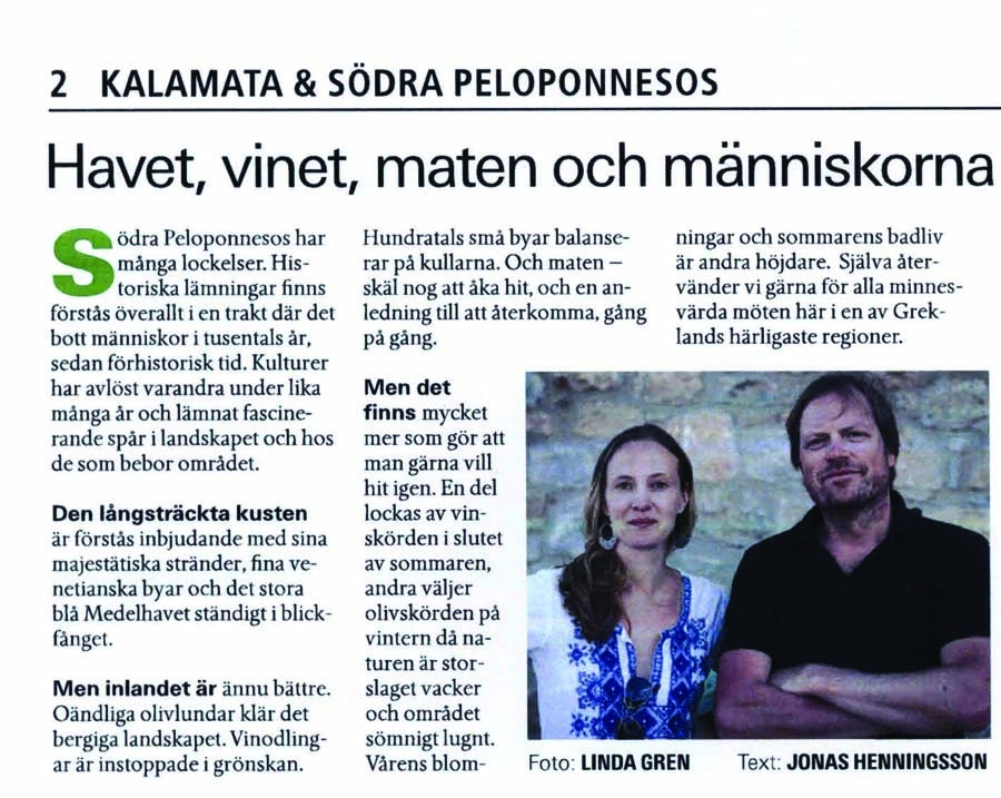 Αφιέρωμα στη Μεσσηνία από σουηδική εφημερίδα με εκατομμύρια αναγνώστες
