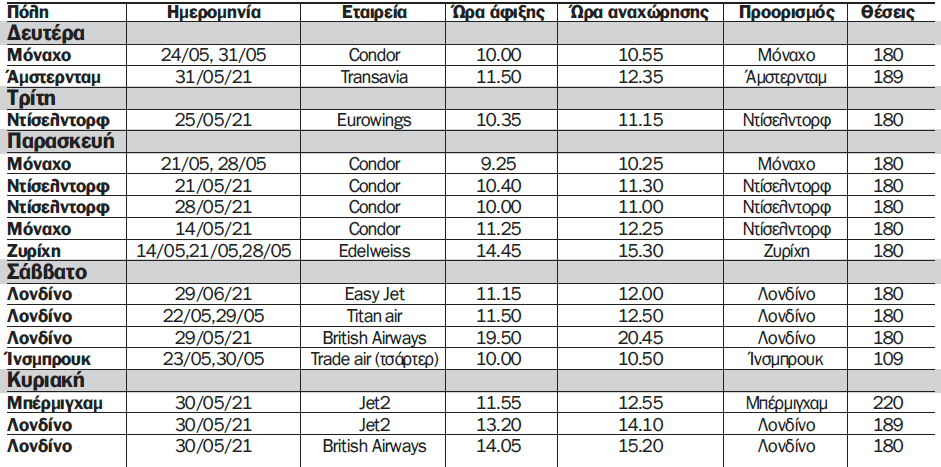 Αναλυτικά οι πτήσεις του Μαΐου παρουσιάζονται στον πίνακα: