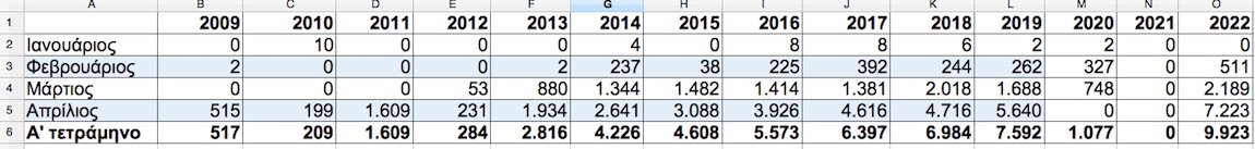 Αναλυτικά αφίξεις του πρώτου τετραμήνου από το 2009 μέχρι φέτος παρουσιάζονται στον πίνακα:
