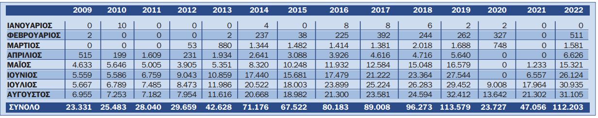 Αναλυτικά οι αφίξεις του πρώτου οκταμήνου από 2009 μέχρι φέτος καθώς και οι αφίξεις ανά εθνικότητα επιβατών (τακτικών πτήσεων και αεροταξί) του τελευταίου δίμηνου παρουσιάζονται στους πίνακες: