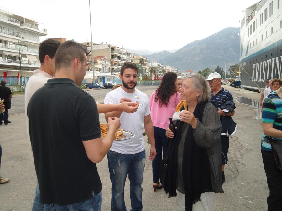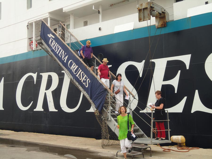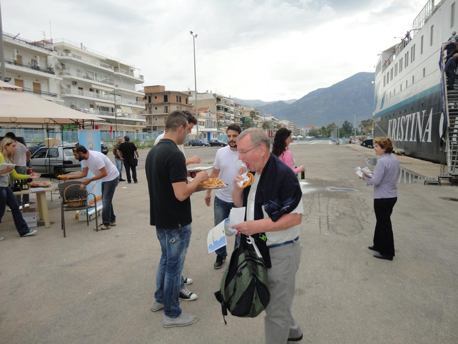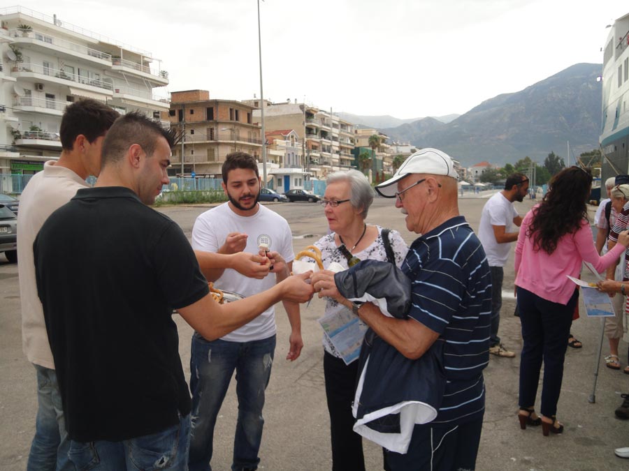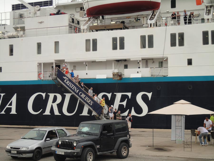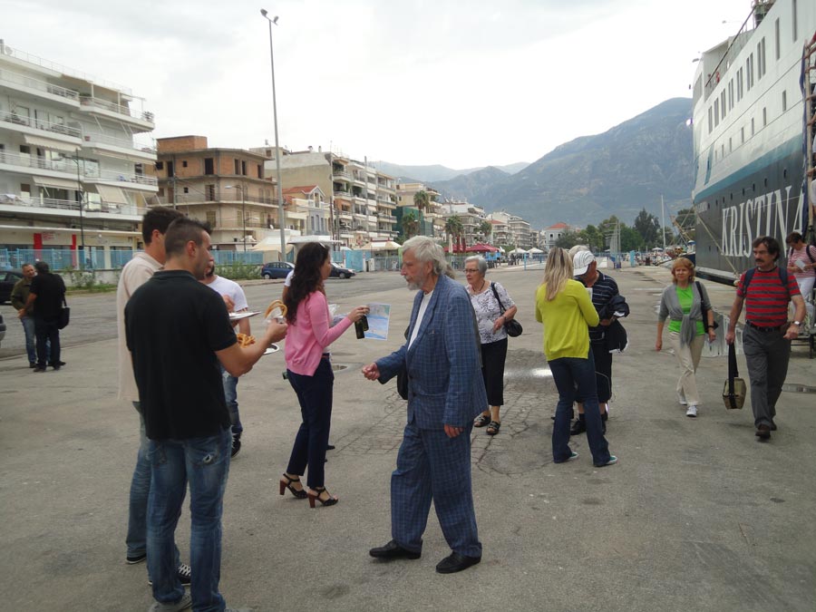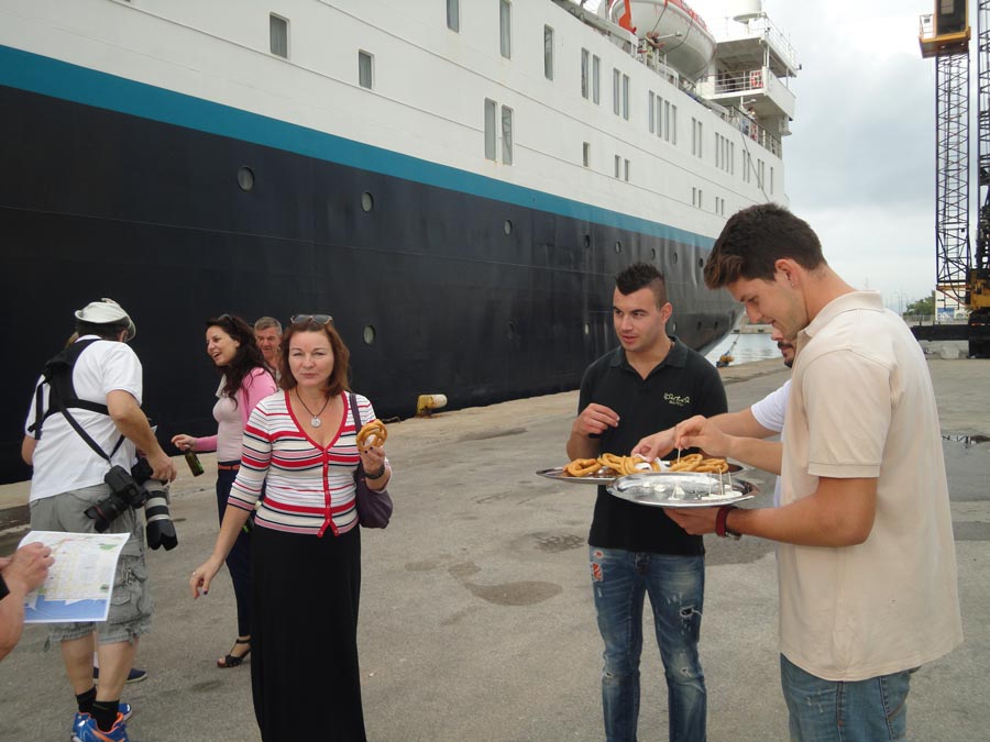 Μεταξύ των επιβατών του υπάρχουν Αυστραλοί, Φινλανδοί, Γερμανοί και Σουηδοί τουρίστες, τους οποίους υποδέχθηκαν επαγγελματίες της πόλης - μέλη του Συλλόγου Καταστημάτων Υγειονομικού Ενδιαφέροντος, προσφέροντάς τους τοπικά εδέσματα. Το πλοίο θα αποπλεύσει το απόγευμα με προορισμό το Κατάκολο.