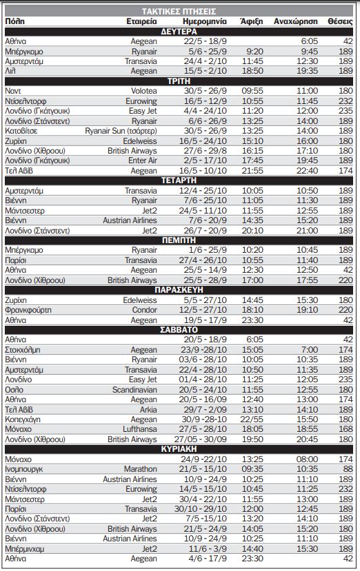 Το Σεπτέμβριο ξεκινούν πάλι οι πτήσεις της Aegean για Στοκχόλμη, Κοπεγχάγη και Μόναχο ενώ διακόπτεται η πτήση της ίδιας εταιρείας για Τελ Αβίβ