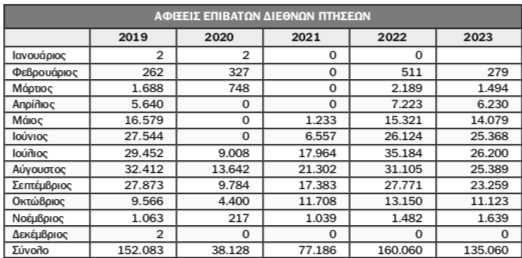 Αναλυτικά οι θέσεις προγραμματισμένων διεθνών πτήσεων στον «Καπετάν Βασίλης Κωνσταντακόπουλος» ανά χώρα προέλευσης και ανά μήνα καθώς και οι αφίξεις επιβατών της τελευταίας πενταετίας παρουσιάζονται στους πίνακες.