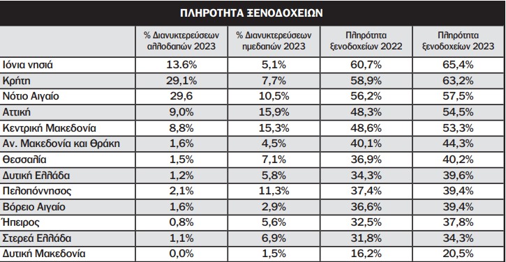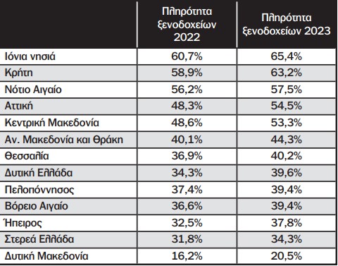 Συγκεκριμένα και σύμφωνα με τα στοιχεία που ανακοίνωσε προχθές η Ελληνική Στατιστική Αρχή το 2023 τα ξενοδοχεία της Περιφέρειας Πελοποννήσου παρουσίασαν χαμηλή πληρότητα 39,45% αν και οι διανυκτερεύσεις σημείωσαν αύξηση 23,1%. Η χαμηλή πληρότητα οφείλεται σε μεγάλο βαθμό στην αδυναμία προσέλκυσης περισσότερων αλλοδαπών επισκεπτών καθώς η Περιφέρεια Πελοποννήσου αποσπά μόνο 2,1% από την πίτα των διανυκτερεύσεων αλλοδαπών στη Ελλάδα. Αντιθέτως η Περιφέρεια Πελοποννήσου αποσπά το 11,3% από την πίτα των διανυκτερεύσεων ημεδαπών και κατατάσσεται στη τρίτη θέση της σχετικής κλίμακας πίσω από τις Περιφέρειες Αττικής και Κεντρικής Μακεδονίας.