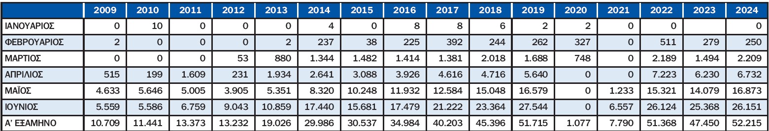 Αναλυτικά στοιχεία για τις αφίξεις επιβατών διεθνών πτήσεων στον Αερολιμένα «Καπετάν Βασίλης Κωνσταντακόπουλος» παρουσιάζονται στον πίνακα: