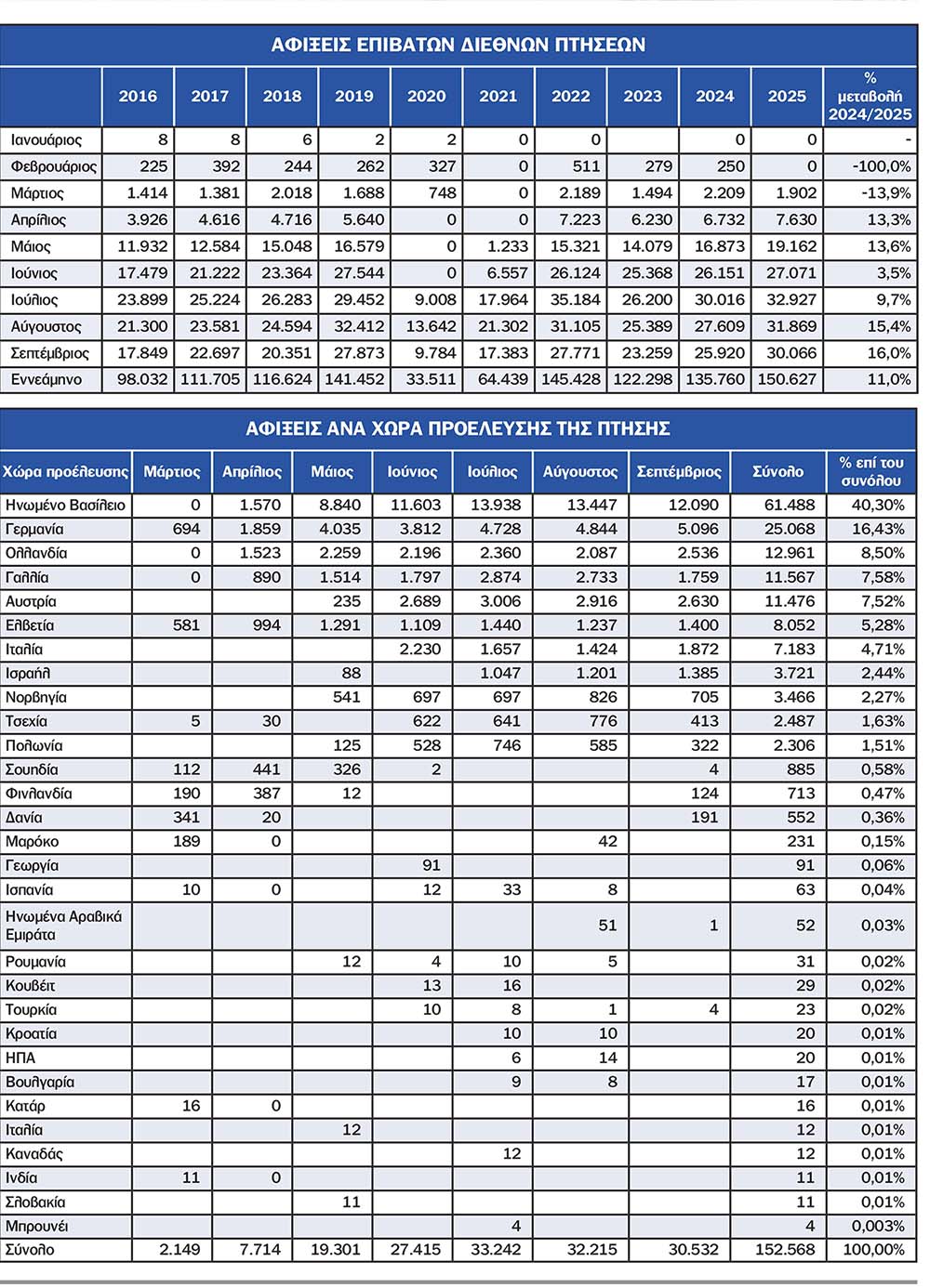 Ρεκόρ αφίξεων επιβατών διεθνών πτήσεων όλων των εποχών και αύξηση 11% σε σχέση με πέρσι, καταγράφηκε το πρώτο εννεάμηνο του 2025 στον Αερολιμένα Καλαμάτας «Καπετάν Βασίλης Κωνσταντακόπουλος». Εκτός απρόοπτου το 2025 θα κλείσει με ετήσιο ρεκόρ αφίξεων επιβατών διεθνών πτήσεων καθώς ήδη έχουν αφιχθεί το φετινό πρώτο ενεάμηνο 150.627 αφίξεις ενώ το 12μηνο του 2024 που είχε καταγραφεί το προηγούμενο ρεκόρ είχαν αφιχθεί 153.607 επιβάτες. Αξίζει να σημειωθεί ότι το φετινό Σεπτέμβριο σε σχέση με τον ίδιο περσινό μήνα σημειώθηκε αύξηση των επιβατών διεθνών πτήσεων κατά 16% και για πρώτη φορά ξεπεράσθηκε ο αριθμός των 30.000 αφίξεως. Επίσης αξίζει να σημειωθεί ότι φέτος συνολικά από και προς τον Αερολιμένα Καλαμάτας έχουν ταξιδέψει 318.718 επιβάτες διεθνών, εγχώριων πτήσεων και αεροταξί.