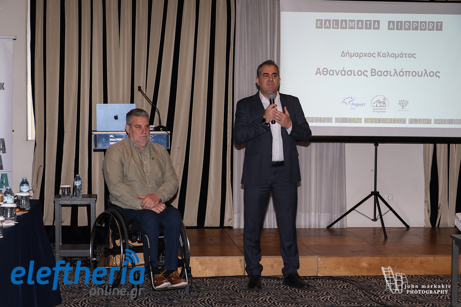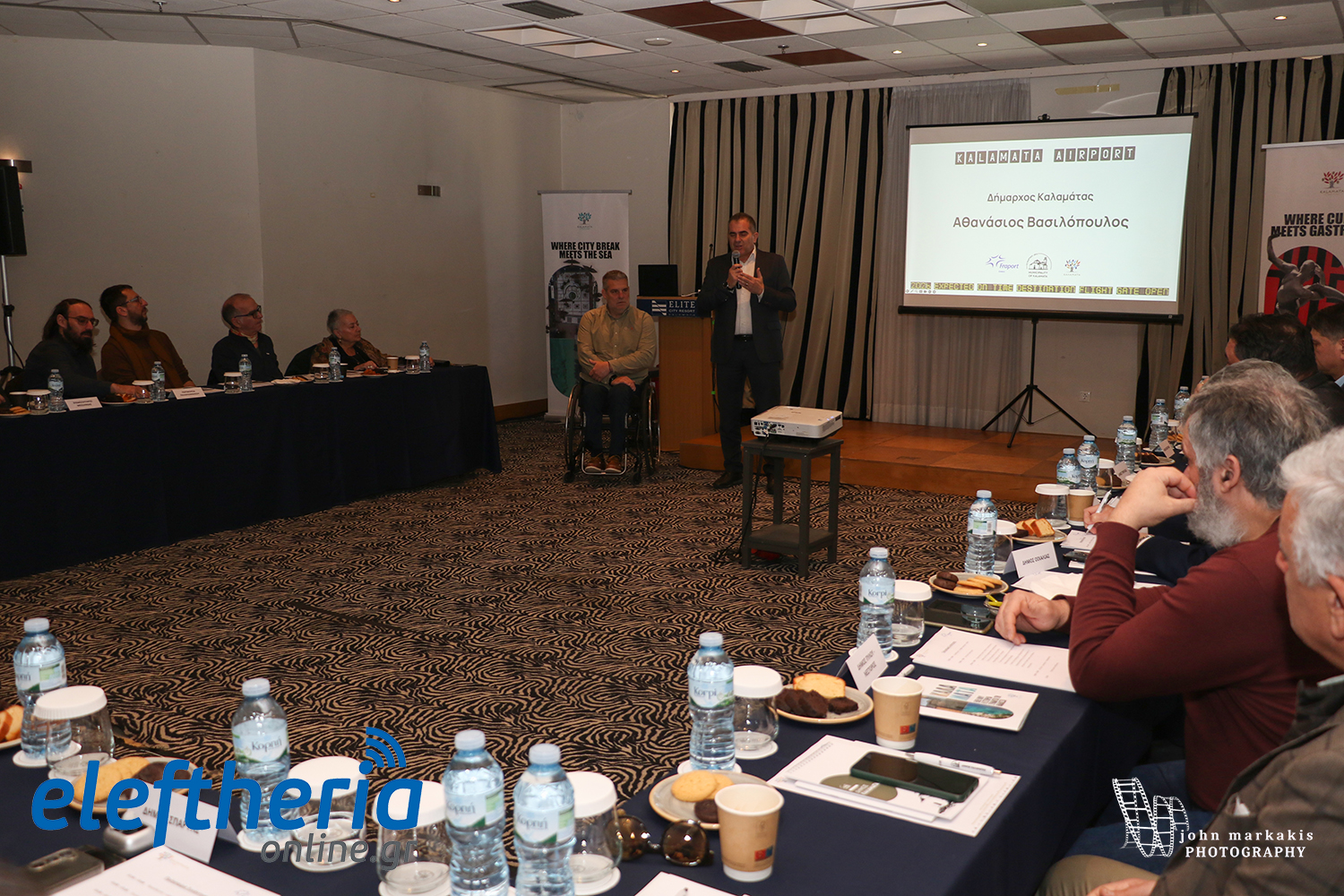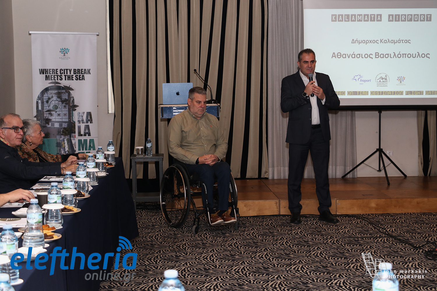 Ο αντιδήμαρχος Τουρισμού Γιώργος Λαζαρίδης δήλωσε: Μία πάρα πολύ σημαντική εκδήλωση, μία πάρα πολύ σημαντική συνάντηση θα έλεγα που γίνεται με πρωτοβουλία του Δήμου Καλαμάτας, του Τμήματος Τουρισμού και σε συνεργασία με την Fraport, την εταιρεία που μέσα από το σύνολο της κοινοπραξίας θα διαχειριστεί των Διεθνή Αερολιμένα Βασίλης Κωνσταντακόπουλος τα επόμενα χρόνια. Εχουμε μια άριστη, συνεργασία, επικοινωνία, συνεχή. και περιμένουμε με αγωνία να ακούσουμε τι σχεδιάζει Fraport και πώς μπορούμε και εμείς τόσο ως Δήμος Καλαμάτης, αλλά και γενικότερα όλοι οι δήμοι της Περιφέρειας Πελοποννήσουμ ιατί θεωρούμε ότι το αεροδρόμιο της Καλαμάτας είναι μία πύλη εισόδου για την Πελοπόννησο και την περιφέρεια Πελοποννήσου να συνεργαστούμε από κοινού για το καλύτερο δυνατό αποτέλεσμα.