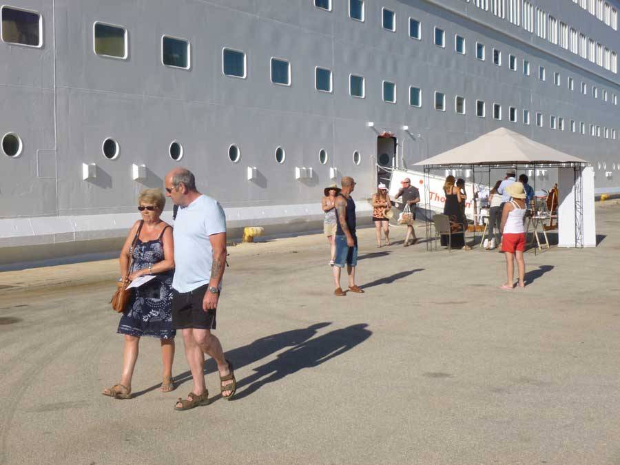Τον κόσμο υποδέχονται υπάλληλοι του Δήμου, που μοιράζουν ενημερωτικό υλικό και τοπικά προϊόντα. Οι πιο πολλοί τουρίστες κατεβαίνουν στην πόλη, ενώ κάποιοι πήγαν με πούλμαν σε αρχαιολογικούς τόπους της Μεσσηνίας.