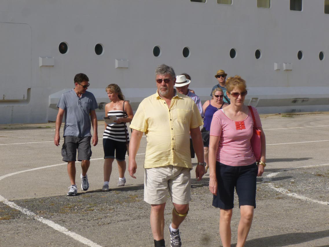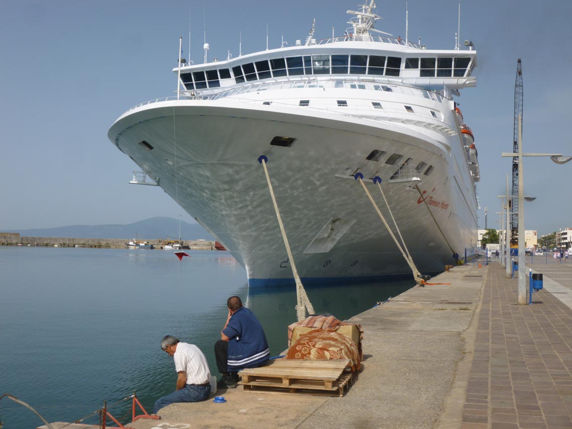 Οι πιο πολλοί τουρίστες επισκέπτονται το εμπορικό και ιστορικό κέντρο της Καλαμάτας. Το κρουαζιερόπλοιο που έχει Ελληνα καπετάνιο και άλλους 20 Ελληνες μέλη του πληρώματος, προέρχεται από τα Χανιά και θα αναχωρήσει στις 3 το μεσημέρι με προορισμό την Κέρκυρα.