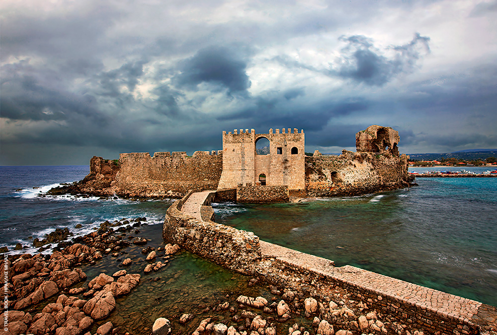 Το εκπληκτικό κάστρο της Μεθώνης είναι χτισμένο στη χερσόνησο του Αγίου Νικολάου και το μήκος του ξεπερνά τα 700 μέτρα. Στην άκρη του ξεχωρίζει το μικρό φρούριο Μπρούτζι που ενώνεται με το κάστρο με τεχνητή πέτρινη γέφυρα.